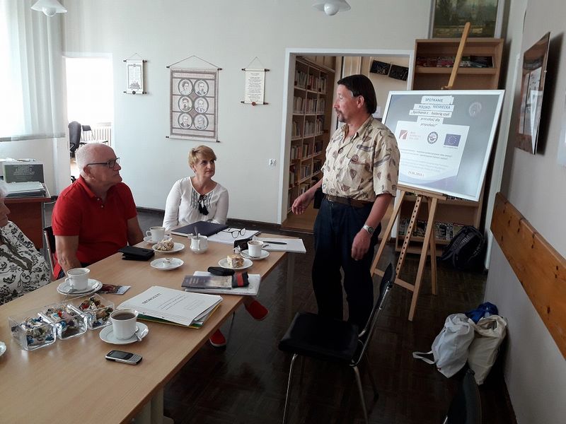 Gościem i prelegentem spotkania był Josef-Georg Pollmann- pasjonata, hobbysta, który interesuje się historią Łęgów Nadwarciańskich. Pan Josef mieszka w Ansbergu  w Niemczech i tam również zajmował się łęgami w swoim mieście. Zainteresowania skierowały go w stronę architektury, to zaś stało się przyczyną zainteresowania pracami robotników przymusowych.. Zaciekawiła go też problematyka robotników przymusowych na obecnych ziemiach polskich. Tak dotarł do Ośna. Dotarł również do wsi Studzionka, a w Pszczewie znalazł ozdobny budynek (szachulec) mieszkalny i drugi budynek gospodarczy wykonany całkowicie z drewna. Podobne obiekty budowane przez Oleandrów znajdują się w Rudnicy, Słońsku, Lemierzycach.