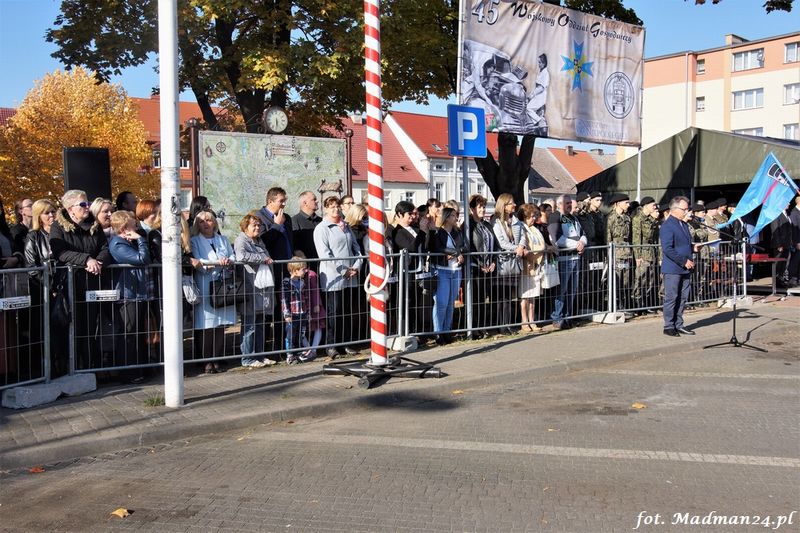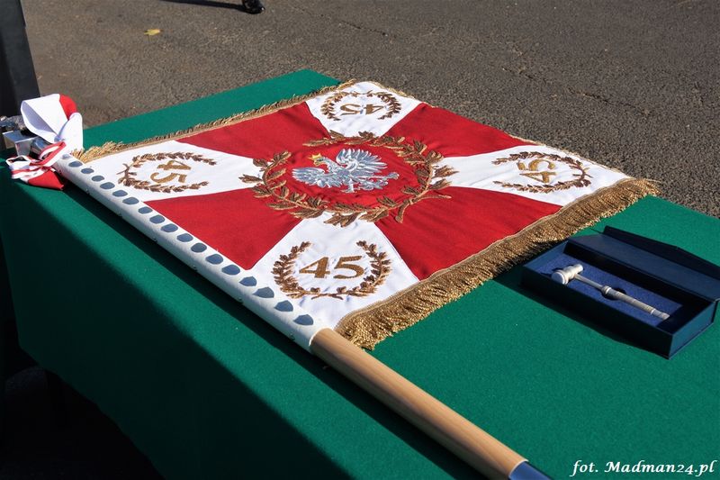 Uroczystość poprzedziła msza święta w kościele św. Mikołaja. Po mszy na pl. Czarnieckiego nastąpiło odczytanie aktu nadania sztandaru. Akt ufundowania sztandaru odczytał wicestarosta Tomasz Prozorowicz. Rodzicami chrzestnymi sztandaru 45 WOG zostali: Maria Dzierniejko oraz ppłk. rez. Sławomir Lewicki. Dokonano symbolicznego wbicia gwoździ honorowych oraz pamiątkowych. Sztandaru poświęcił delegat biskupa polowego Wojska Polskiego dziekan wojsk lądowych ks. płk Grzegorz Krupski. Z rąk rodziców chrzestnych sztandar przyjął płk Rafał Smuszkiewicz, który następnie przekazał go komendantowi 45 WOG ppłk Waldemarowi Kliszczakowi.
