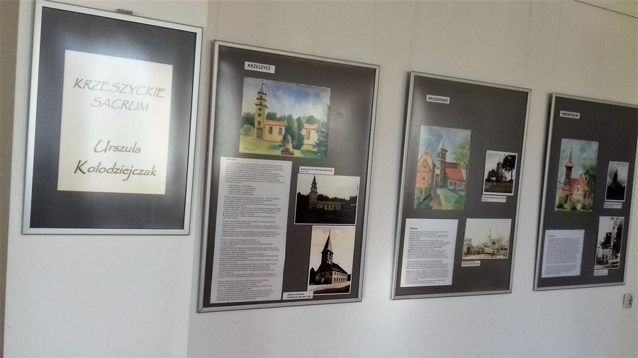 zaprasza do zwiedzania wystawy. Prace w akwareli, fotografia, szczegółowy opis wszystkich kościołów oraz obiektów sakralnych gminy Krzeszyce, pt. ,,Krzeszyckie sacrum”.