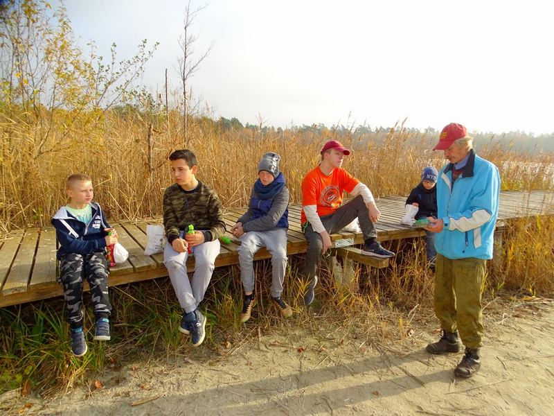 W trakcie spaceru adepci szkółki wędkarskiej dowiedzieli się wiele ciekawostek odnośnie tego zbiornika wodnego (rybostanu, roślinności wodnej) oraz otaczającego ten akwen terenu. Wycieczkę uwieńczyliśmy wspólnym pieczeniem kiełbasek na ognisku, a na koniec słodki deser.