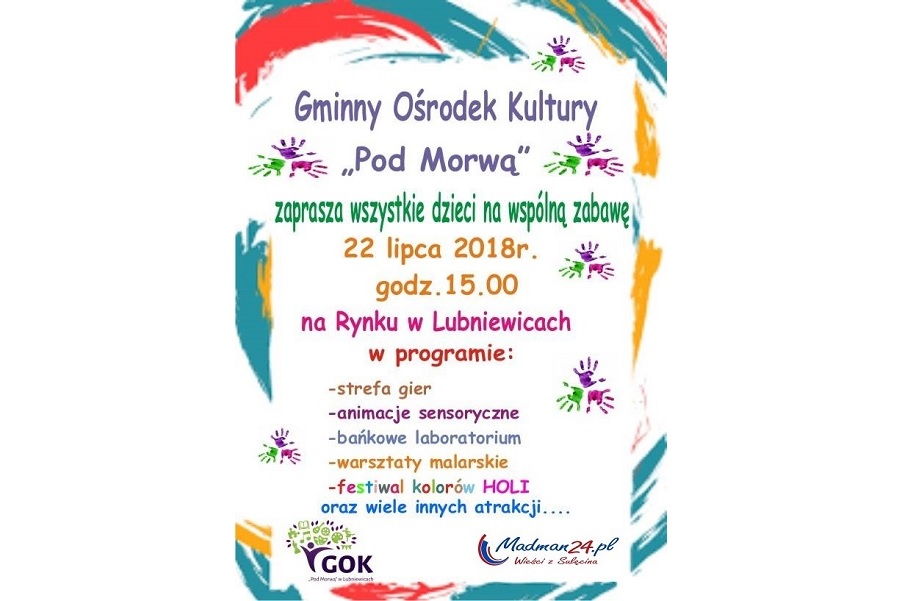 Gminny Ośrodek Kultury „Pod Morwą” w Lubniewicach GOK Lubniewice na wakacje – oferta 22.07.2018r. godz.15.00 – Lubniewicki Rynek Animacje dla…