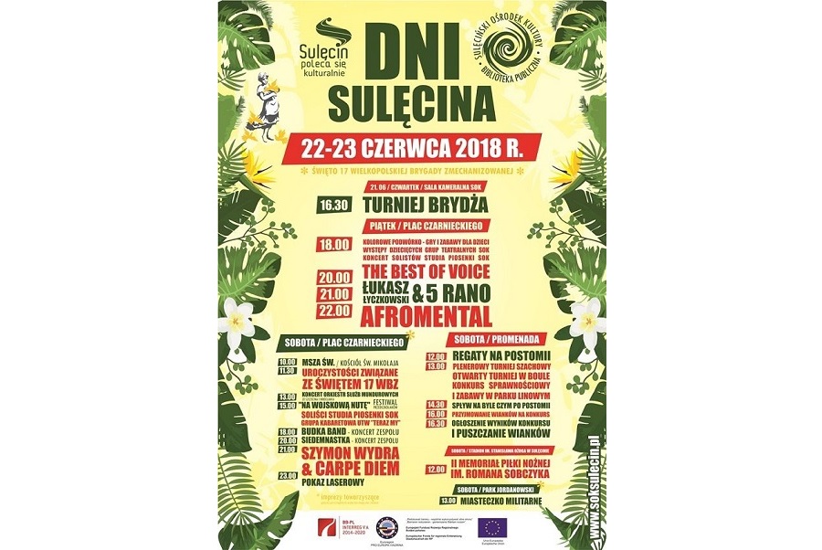 Będzie się działo! Zapraszamy na Dni Sulęcina Burmistrz Sulęcina, Dariusz Ejchart, 17 Wielkopolska Brygada Zmechanizowana oraz Sulęciński Ośrodek Kultury zapraszają…