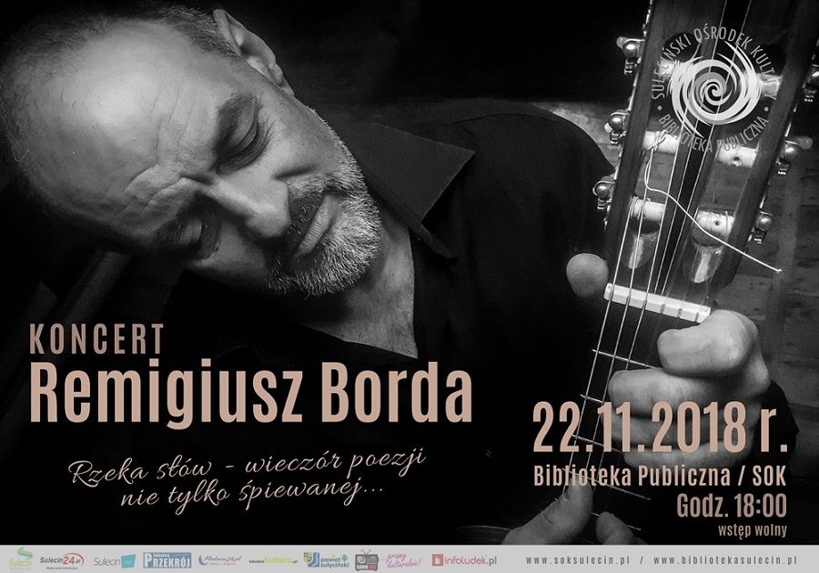 Biblioteka Publiczna w Sulęcinie Koncert Remigiusza Bordy Rzeka słów – wieczór poezji nie tylko śpiewanej. Koncert Remigiusza Bordy 22.11.2018 r.…