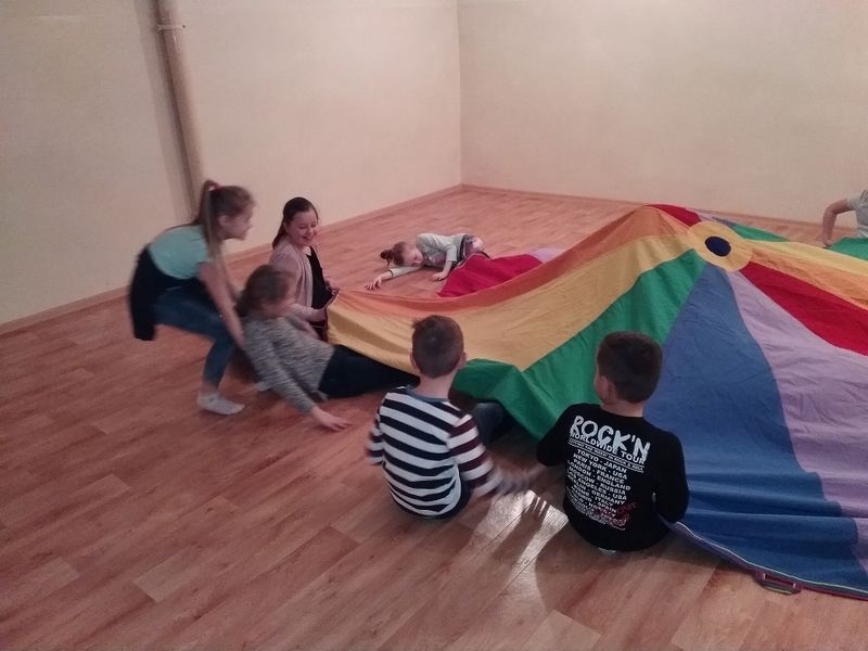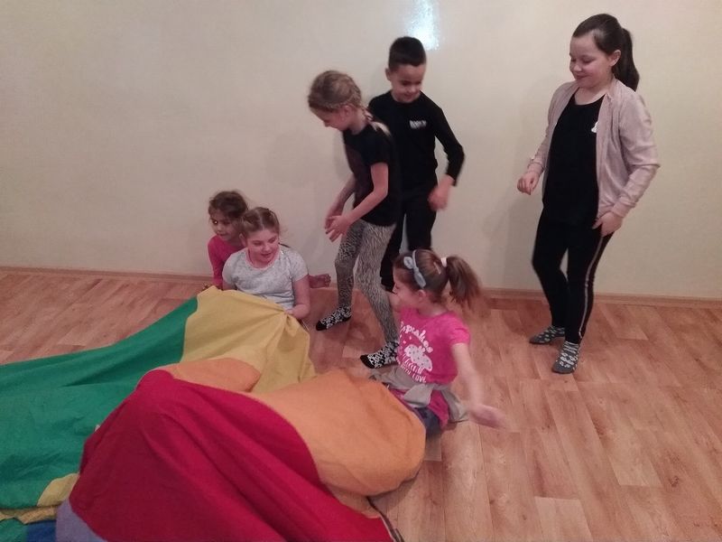 Jak na bibliotekę przystało, nie mogło zabraknąć głośnego czytania oraz zapoznania dzieci z księgozbiorem nie tylko dla najmłodszych. Zajrzeliśmy także na półki z książkami o zagrożeniach jakie niosą za sobą różnego rodzaju uzależnienia. Każdego dnia zajęciom towarzyszyły zabawy ruchowe m.in. ,,Muzyczne krzesła”, ,,Pajęczyna przeszkód”, ,,Klanza’’ ,,Kalambury” i ,,Wierszyki –masażyki”, zaczerpnięte z zabaw rozwijająco- ruchowych metodą Weroniki Sherbone.