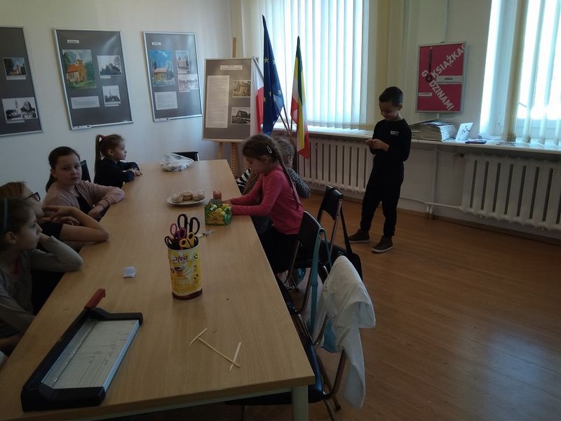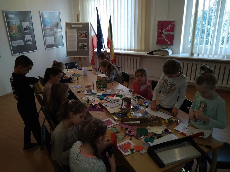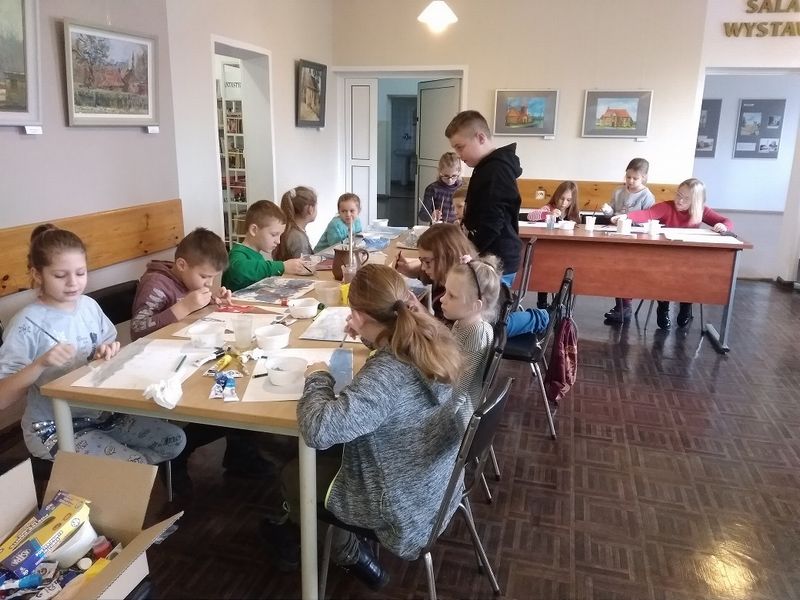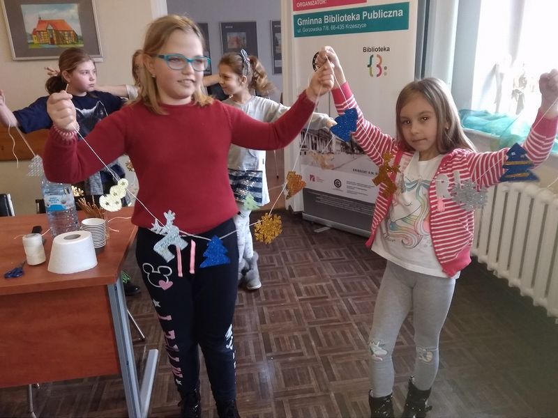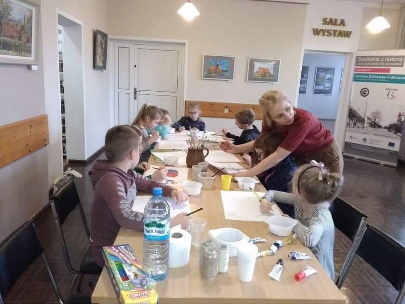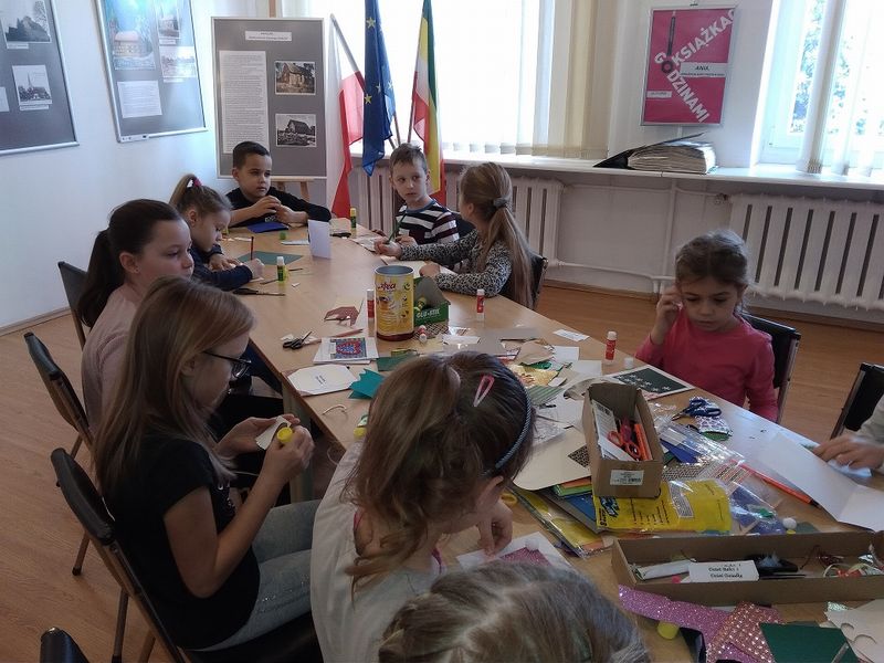 Dzieci uczestniczące w spotkaniach pod okiem przygotowanych do tego typu zajęć pracowników. Wkazały się kreatywnością podczas prac między innymi nad karmikiem wykonanym z butelek PED. Także zimowej girlandy, która wymagała od dzieci uruchomienia zmysłu artystyczno-przestrzennego. Ponadto uczestnicy wykonali kartki w „3D” na DZIEŃ BABCI I DZIADKA. Wcielili się też w artystów malarzy i namalowali pejzaż zimowy widziany z okna biblioteki.