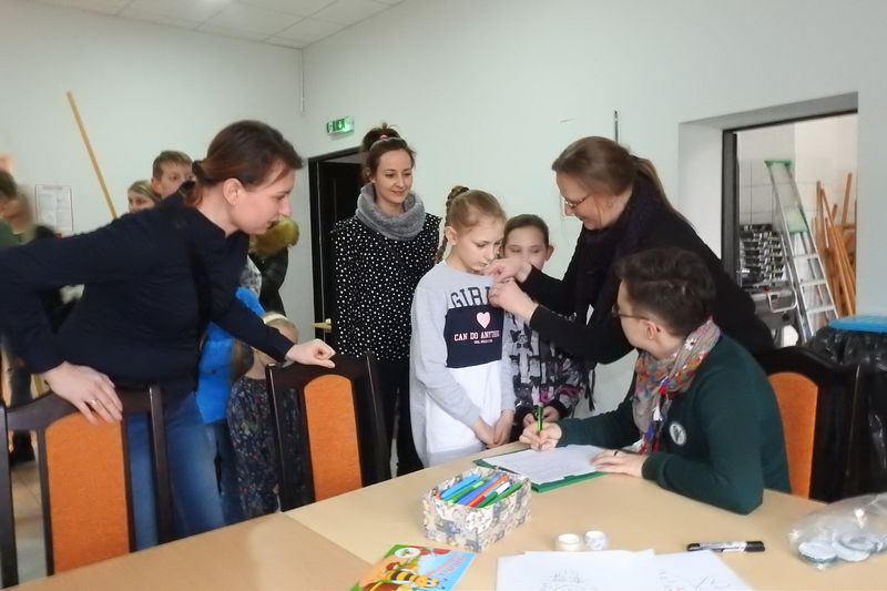 Dla młodszych uczestników wydarzenia przygotowany był kącik plastyczny, gdzie każde dziecko mogło narysować lub pokolorować sowę, wykleić z krępiny lub zrobić sowi lampion. Młodzi artyści otrzymywali odblaski w kształcie sowy oraz długopisy.