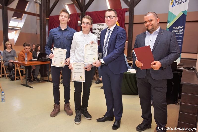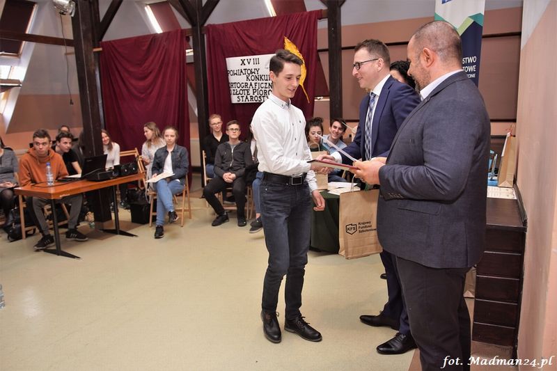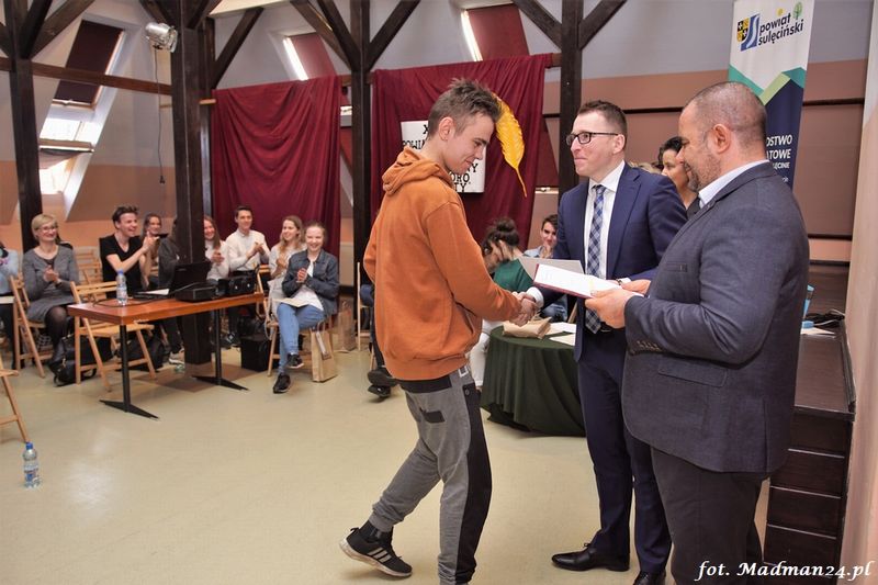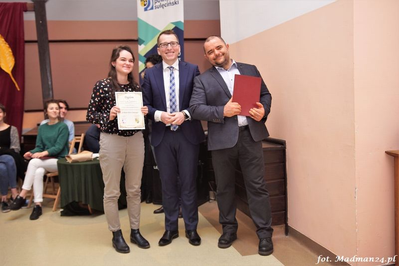 Nagrody oraz dyplomy wręczali: starosta Tomasz Juskuła i dyrektor LO Tomasz Walenciak.