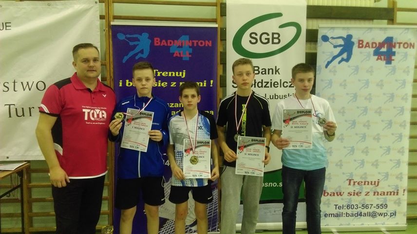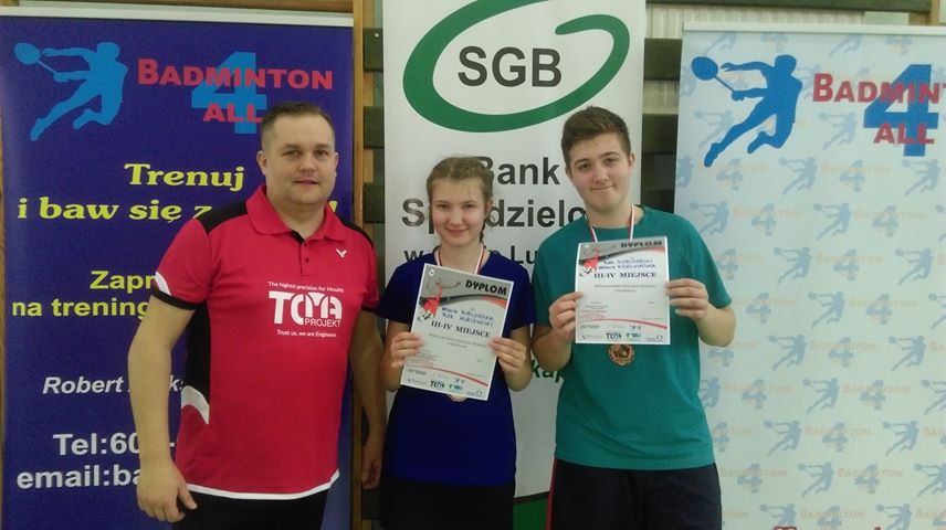 Medale zdobyli : Gra pojedyncza : Weronika Aleksandrowicz (srebro), gra podwójna dziewcząt : Zuzanna Mierzejewska /Sandra Szczerbin (brąz). Gra mieszana : Łukasz Chudziński /Weronika Aleksandrowicz (srebro). Blisko medalu byli bracia Sudakowscy ostatecznie zajęli 5-8 miejsce. Zawodników prowadzi trener Robert Aleksandrowicz