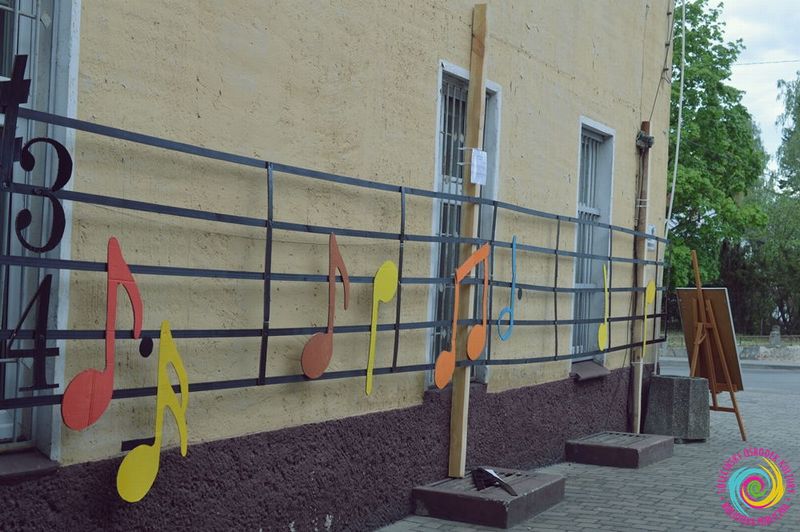 Malowanie nutek – nutki, klucz wiolinowy i pięciolinie zawierają fragment arii Jontka „Szumią jodły na gór szczycie” z opery „Halka” Stanisława Moniuszki. O piękne kolory na nutkach zadbali najmłodsi. Od teraz wielka pięciolinia zdobi jedną ze ścian budynku.