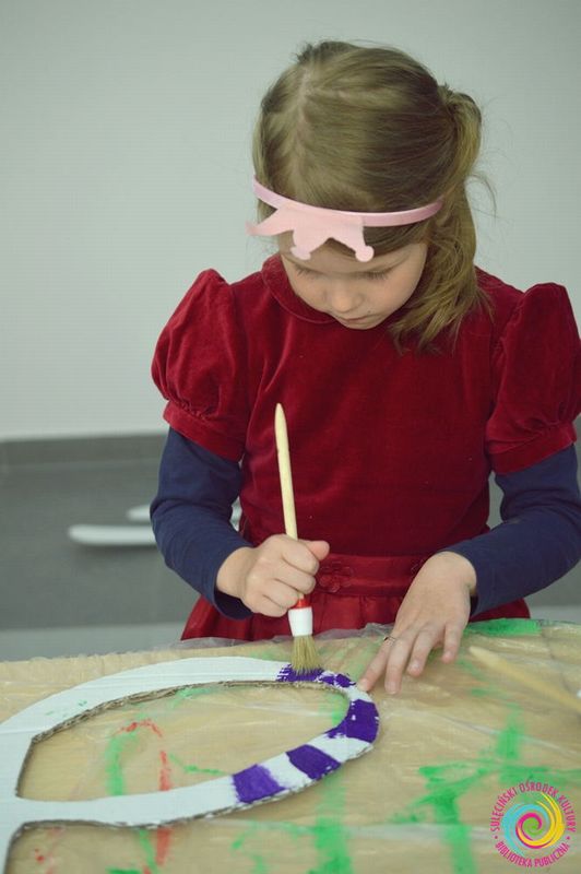 Malowanie na sztalugach obrazów, inspirowanych koncertem String Girls Band.