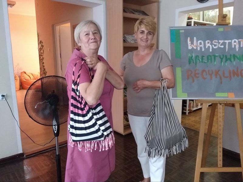 Natomiast dorośli ,,wzięli na warsztat‚” podkoszulki i wykonali wyjątkowe torby czytelnika, które zastąpią reklamówki. Od tej pory będą pakowane wypożyczane książki.