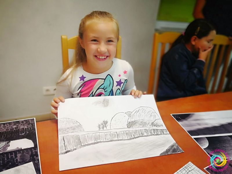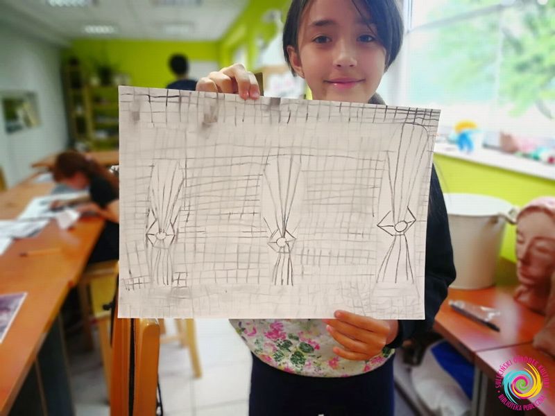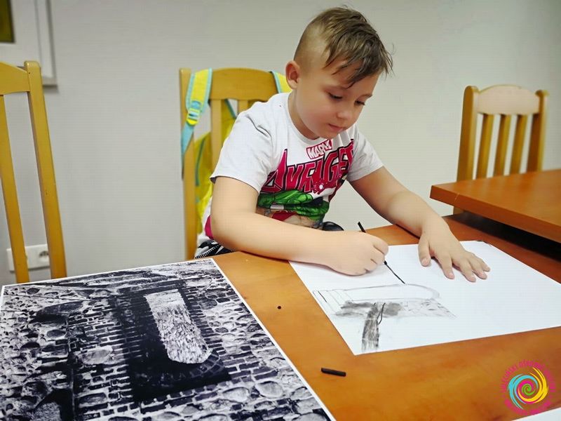 12 lipca, w piątek, pogoda nieco pokrzyżowała nam plany – tego dnia rysowaliśmy obrazy węglem, a inspiracją do powstania prac były zdjęcia Sulęcina, które specjalnie dla nas na czas pleneru wykonali zaprzyjaźnieni fotografowie.