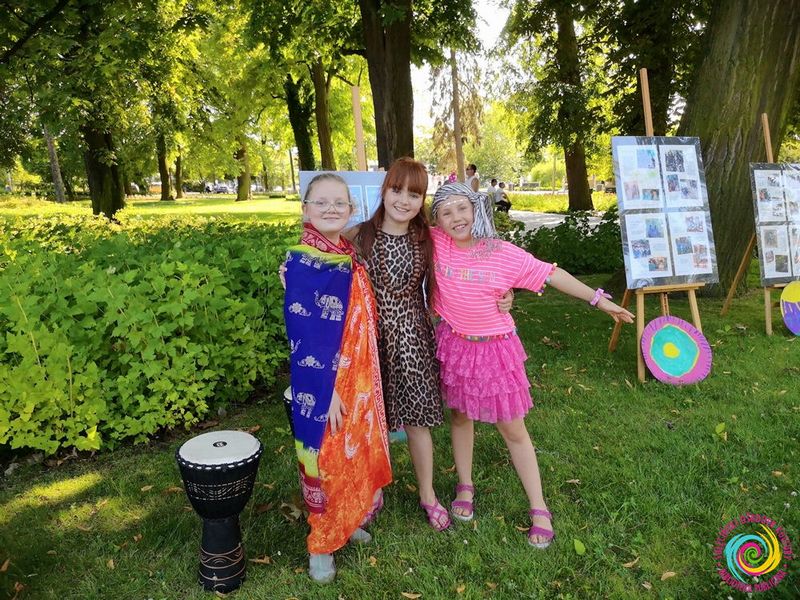 Naszym głównym elementem zajęć była nauka afrykańskiego tańca, który następnie zaprezentowaliśmy przed publicznością. A co poza tym? Tworzyliśmy recyklingowe instrumenty, a także elementy wystroju – biżuterię oraz tarcze z karonu.