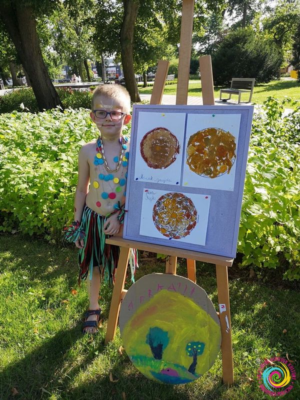 W drugim tygodniu zajęć (23-25.07) wybraliśmy się w podróż do kolorowych i pachnących Indii, by lepiej poznać (szczególnie kolory, tradycje i zapachy tego miejsca). Na kartkach papieru z przypraw oraz na ziemi z kolorowej soli, tworzyliśmy piękne i wyjątkowe mandale. Zanim jednak przeszliśmy do twórczej pracy, podzieleni na grupy rozpoznawaliśmy najbardziej charakterystyczne, indyjskie zapachy (imbir, curry, kurkumę, paprykę, anyż, majeranek czy czarnuszkę). Barwiliśmy sól za pomocą kredy. Było bardzo twórczo i kreatywnie!