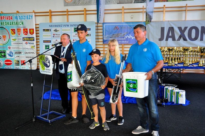 Sprzęt i akcesoria wędkarskie przekazał nam Przewodniczący Rady ds. Młodzieży ZG PZW Wiesław Miś w trakcie ceremonii  zakończenia Ogólnopolskiej Olimpiady Młodzieży w Sportach Wędkarskich, która odbyła się w Lubsku.