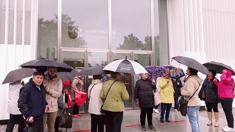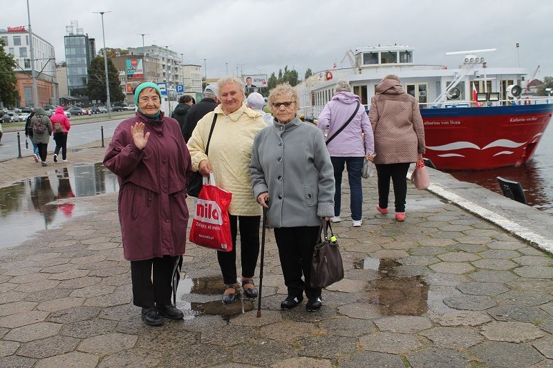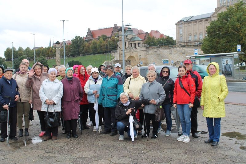 Zwiedzanie miasta rozpoczęło się spacerem z przewodnikiem opowiadającym o historii i portowym charakterze miasta. Seniorzy podziwiali Zamek Książąt Pomorskich oraz Filharmonię Lodową i przepiękne Jasne Błonia, czyli szczeciński haide park oraz jedno z najstarszych działających nieprzerwanie w tym samym miejscu kin na świecie „Pionier”. Wszyscy pełni wrażeń i zadowoleni wrócili do domu w oczekiwaniu na następny wyjazd.