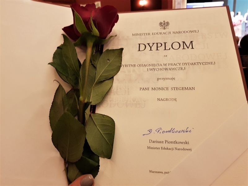 Ta myśl koresponduje ze szczególnym wydarzeniem. Na wniosek Dyrektora Młodzieżowego Ośrodka Socjoterapii w Ośnie Lubuskim została przyznana Pani Monice Stegeman nagroda Ministra Edukacji Narodowej.