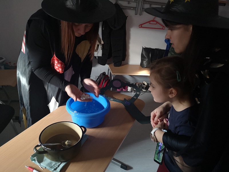 27 listopada w naszej szkole zapanowała magiczna atmosfera, uczniowie przenieśli się w świat wróżb i zabaw andrzejkowych. Pani Ula, Kasia, Agnieszka i Marzena w ten niezwykły dzień zamieniły się w przyjazne czarownice i przygotowały dzieciom tradycyjne wróżby: lanie wosku przez czarodziejski klucz, serce z imionami, a także losowanie karteczek z wróżbami, dzięki którym można było się dowiedzieć jaki prezent w tym roku dostaniemy od Mikołaja. Zabawy i wróżby przyniosły uczniom wiele radości i pozytywnych emocji. Ten wyjątkowy i czarodziejski nastrój dopełniła także magiczna dekoracja – blask świec i kolorowych świateł.