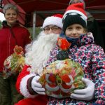 Mikołaj strudzony podróżą spoczął w przygotowanym dla niego fotelu i zaczął rozdawać grzecznym dzieciom przywiezione przez niego prezenty, zadawał dużo pytań, pozował do zdjęć. Dzieci nie były dłużne i także przygotowały dla Mikołaja własnoręcznie narysowane obrazki, laurki, ozdoby choinkowe oraz świąteczne pierniczki. Kiedy zmęczony już Mikołaj musiał wyruszyć w dalszą podróż, 101 dzieci pożegnało naszego gościa życząc mu szczęśliwego powrotu do Laponii i do zobaczenia za rok.