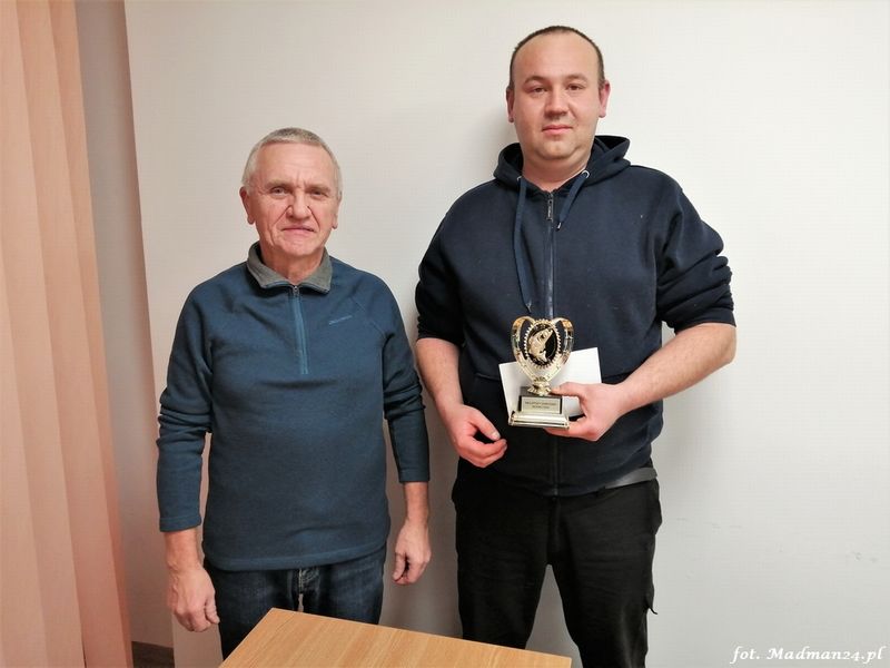 Nagrodę i puchar wręcza prezes koła – Marek Marciniak.