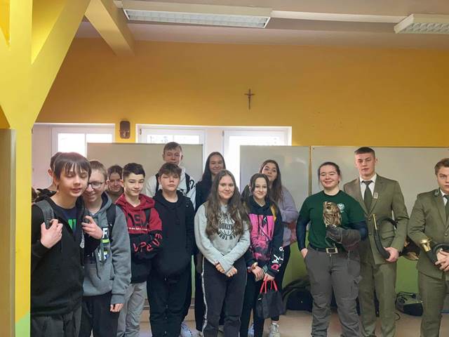 Nasi uczniowie dowiedzieli się ważnych informacji o funkcjonowaniu szkoły i internatu oraz o możliwościach spędzania wolnego czasu po lekcjach ( strzelnica multimedialna, siłownia, spacery w plenerze). Szkoła posiada bogato wyposażone warsztaty, przygotowujące do pracy w lesie na profesjonalnym sprzęcie. Mieliśmy okazję wziąć udział w konkursach z nagrodami, popisać się posiadaną wiedzą. Zobaczyć tropy zwierząt, rodzaje drewna, gatunki insektów, skorzystać z symulatorów halwestera i forwardera, postrzelać z łuku i obejrzeć praktyczną obsługę pilarki spalinowej. Największe zainteresowanie wzbudziło spotkanie z przedstawicielami kół: sokolniczego i sygnalistów myśliwskich ,,Głos kniei”. Przyszli absolwenci i siódmoklasiści byli pod wielkim urokiem spotkania z pustułką, myszołowem i puszczykiem. Pełni emocji, obserwowali ptaki i zadawali wiele pytań, dotyczących ich życia. Podsumowaniem wizyty było wspólne pieczenie kiełbasek.