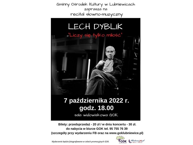 Przed nami kolejny rok artystyczny, który rozpoczniemy recitalem słowno- muzyczny Lecha Dyblika. Już dziś serdecznie zapraszamy na to wydarzenie, szczegóły na plakacie.