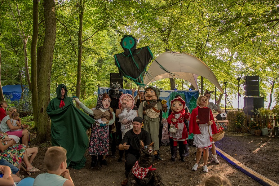 A na tych, co za rybami nie przepadają, czekało stoisko gastronomiczne Stowarzyszenia Klub Seniorów Gorące Serca. Nasze cudowne panie jak zawsze stanęły na wysokości zadania i nakarmiły szerokie grono uczestników. Druga część spotkania zadziała się na pięknie udekorowanej, folkowej scenie, której blask rozświetlił wieczorową porą wachlarz barw. Tę część rozpoczęliśmy spektaklem pt. „Czerwony Kapturek” w wykonaniu Warsztatu Terapii Zajęciowej ze Strzelec Krajeńskich. Pierwszy koncert zagrała formacja Slavic Folk Orchestra, która zabrała nas w muzyczną podróż po słowiańszczyźnie. Uczestnicy usłyszeli utwory bardziej skoczne, taneczne ale też przepełnione nostalgia i tęsknotą. Na koniec wystąpiła grupa ” Niesamowita Sprawa”, która poderwała słuchaczy do tańca. Cóż to była za dawka niesamowitej energii, która udzieliła się i młodszej , i starszej publiczności…