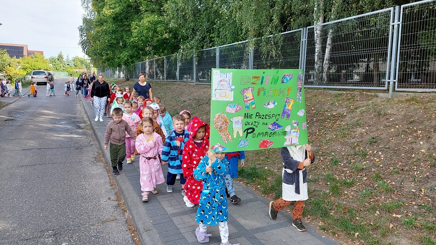 29 września 2023 r. przedszkolaki po raz drugi zamiast spodni, sukienek czy spódniczek założyły piżamy. Powodem takiego stroju były obchody ,,Dnia Piżamy’’, który jest częścia akcji charytatywnej ,,Obudź w sobie anioła’’. Wydarzenie to ma zasięg ogólnopolski i jest organizowane przez Fundacje „Gdy liczy się czas”.