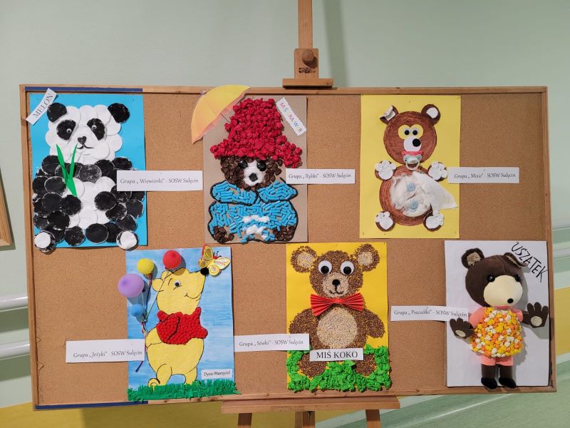 I Międzyprzedszkolnym Konkursie Plastycznym „Mój Przyjaciel – Pluszowy Miś”. Celem konkursu było kształtowanie i rozwijanie zainteresowań artystycznych dzieci, rozwijanie inwencji i wyobraźni twórczej, doskonalenie umiejętności manualnych dzieci oraz integracja środowisk dzieci i nauczycieli. Patronat honorowy nad konkursem objął Pan Starosta Tomasz Jaskuła. W konkursie wzięły udział dzieci z Przedszkola Specjalnego z Międzyrzecza, Nowej Soli, Słubic, Świebodzina, Sulechowa, dzieci z Przedszkola Specjalnego dla dzieci z Autyzmem z Gorzowa Wielkopolskiego a także przedszkolaki z naszej Placówki. Dzieci z pomocą swoich pań wykonały różnymi technikami przepiękne prace plastyczne, które przedstawiały Pluszowego Misia. Każdy z nich był wyjątkowy i miał nadane przez przedszkolaków imię. W holu Ośrodka została zorganizowana wystawa prac konkursowych. Nagrody dla dzieci z placówek, które wzięły udział w naszym konkursie zgodnie z regulaminem zostaną wysłane pocztą, natomiast dzieci z Oddziałów Przedszkolnych ze Specjalnego Ośrodka Szkolno – Wychowawczego w Sulęcinie nagrody otrzymały z rąk Pani dyrektor Danuty Werner. Otrzymane nagrody sprawiły wiele radości dzieciom. Serdecznie dziękujemy naszym Sponsorom, bo to Państwa ogromne wsparcie finansowe i rzeczowe sprawiło, że dzieci mogły cieszyć się fantastycznymi nagrodami.