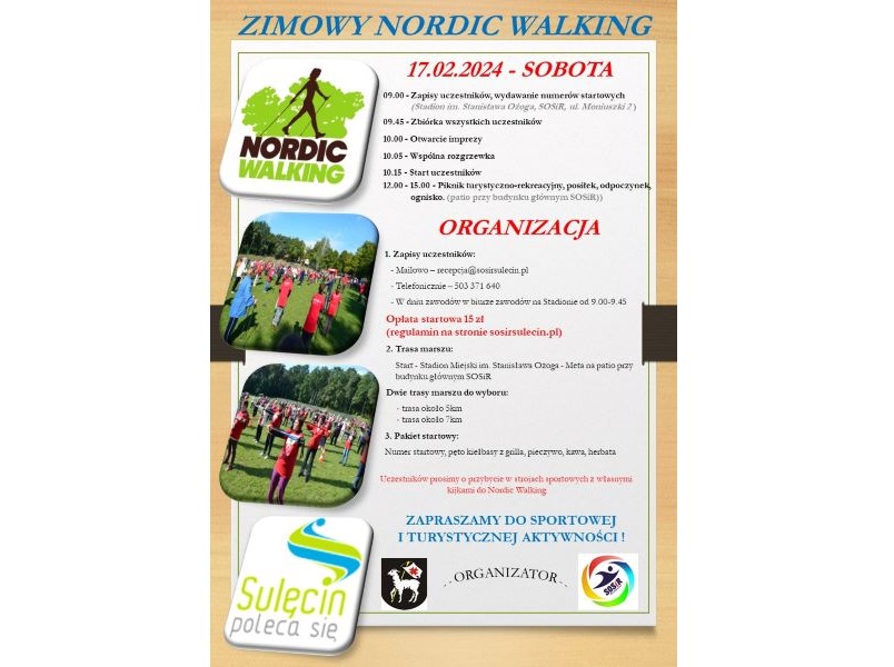 1. Zimowy Nordic Walking odbędzie się w dniu 17 lutego 2024 r. o godz. 10.00.