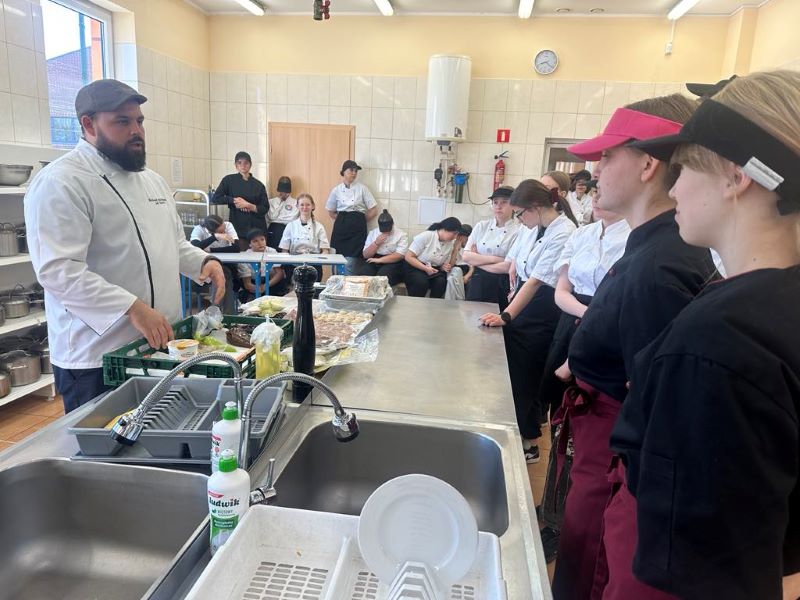 Dzisiaj gościem szkolnych warsztatów gastronomicznych był pan Bartłomiej Pawlikowski szef kuchni restauracji „Kniejówka” w Ownicach, który podzielił się z młodymi adeptami sztuki gastronomicznej swoimi doświadczeniami, wiedzą i umiejętnościami, a te są na najwyższym poziomie.