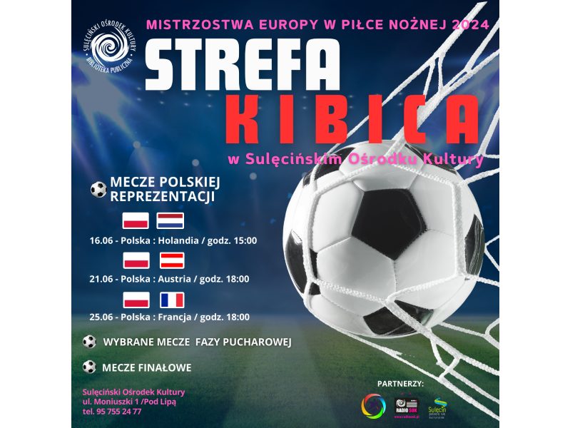 Sulęciński Ośrodek Kultury oraz Biblioteka Publiczna w Sulęcinie zapraszają Was na wspólne kibicowanie w oficjalnej Strefie Kibica przygotowywanej „pod Lipą” – na terenie Sulęcińskiego Ośrodka Kultury.