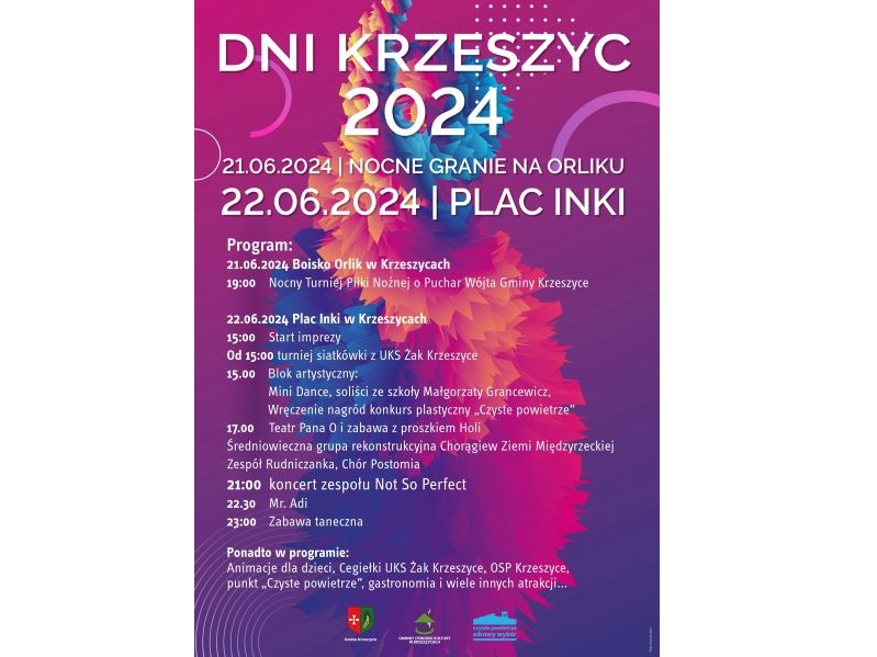 Aktualności Wkrótce..... Zapraszamy na Dni Krzeszyc Madman cze 17, 2024 0 Zapraszamy na Dni Krzeszyc 2024 21.06.2024 – nocne granie na Orliku 22.06.2024 – Plac Inki Madman
