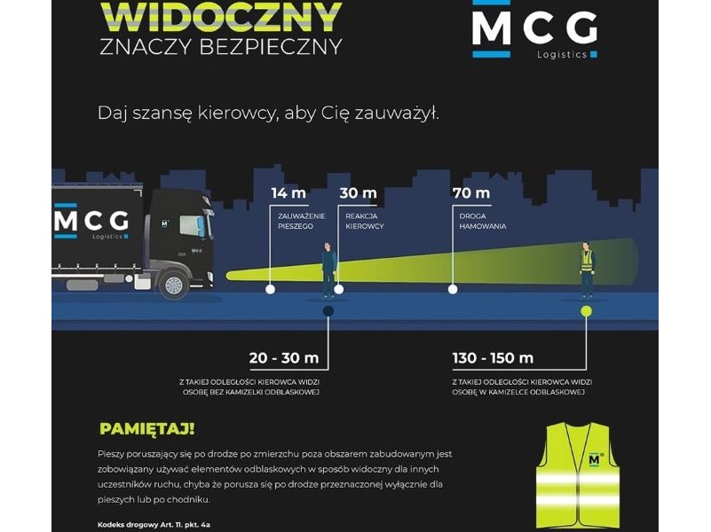 Nasi managerowie mają w swoich samochodach dodatkowe odblaski, które wręczają osobom spotkanym po zmroku, szczególnie poza obszarem zabudowanym, jeśli nie są dobrze widoczne. To drobny gest, który może uratować czyjeś życie.