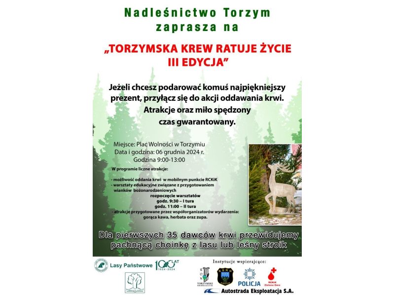 Nadleśnictwo Torzym zaprasza wszystkich do wzięcia udziału w III edycji akcji: „TORZYMSKA KREW RATUJE ŻYCIE”
