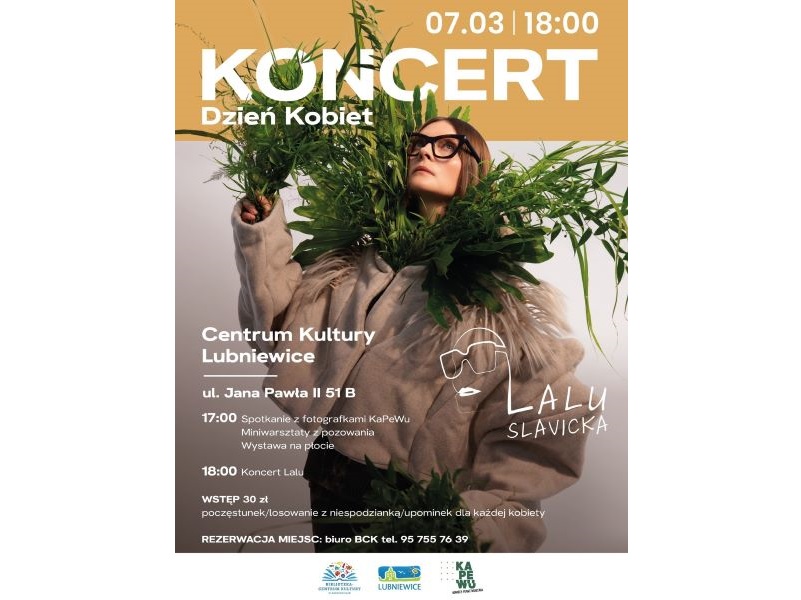 Aktualności Wkrótce..... Lalu Slavicka na Dzień Kobiet Madman lut 25, 2025 0 Lalu Slavicka na Dzień Kobiet Centrum Kultury w Lubniewicach – 07.03.2025