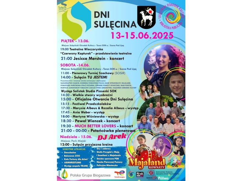 Poniżej przedstawiamy pełny harmonogram Dni Sulęcina 2025: