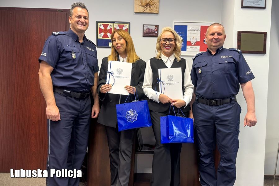 W poniedziałek (16 czerwca) Komendant Powiatowy Policji w Sulęcinie podinspektor Krzysztof Staszewski oraz jego Zastępca podinspektor Mirosław Chmielewski spotkali się z Panią Eweliną Dąbrowską oraz dyrektorem placówki bankowej Panią Martą Franas, aby oficjalnie podziękować za współdziałanie na rzecz bezpieczeństwa mieszkańców naszego powiatu. Szef sulęcińskiej jednostki wręczył obu Paniom listy gratulacyjne oraz drobne upominki, wyrażając uznanie za troskę o drugiego człowieka. Jak zaznaczył, profesjonalizm to jedno, ale w takich przypadkach liczy się przede wszystkim empatia i zaangażowanie.