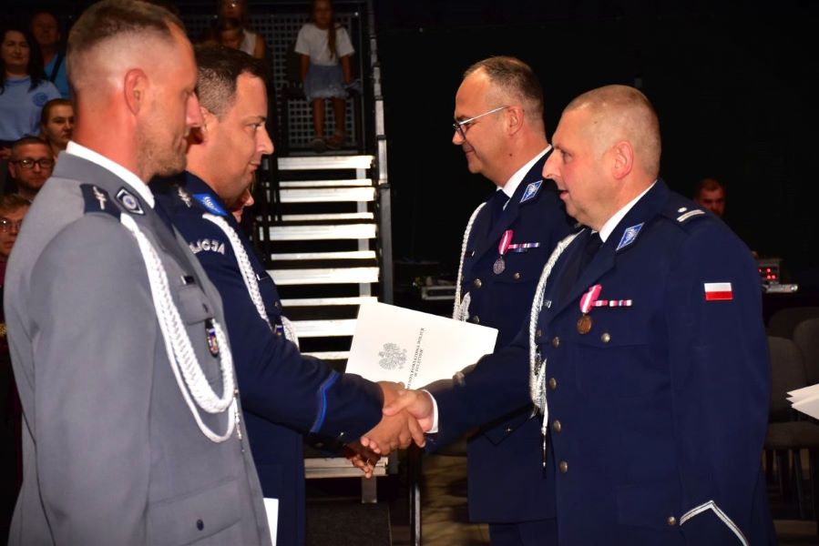 Ksiądz Proboszcz, a zarazem Kapelan sulęcińskiej Policji na zakończenie liturgii zaznaczył, iż jest dumny z postawy funkcjonariuszy i funkcjonariuszek, którzy na co dzień zapewniają bezpieczeństwo mieszkańcom powiatu. Głównym punktem obchodów była uroczysta zbiórka, która rozpoczęła się punktualnie o godzinie 13.00 w sali widowiskowej Sulęcińskiego Ośrodka Kultury w Sulęcinie. Nasi policjanci i policjantki odebrali odznaczenia, awanse na wyższe stopnie służbowe z rąk Zastępcy Komendanta Wojewódzkiego Policji w Gorzowie Wielopolskim inspektora Radosława Kaczorowskiego oraz Komendanta Powiatowego Policji w Sulęcinie podinspektora Krzysztofa Staszewskiego, jak również wyróżnienia od władz samorządowych. W swoich przemówieniach obaj Panowie Komendanci podkreślali, iż są one wyrazem uznania za zaangażowanie i profesjonalizm, ale również inspiracją do kolejnych osiągnięć. Komendant Kaczorowski odczytał list okolicznościowy inspektora Jerzego Czebreszuka szefa lubuskich policjantów. Zaznaczył również, iż sulęcińska jednostka zawsze będzie miała wyjątkowe miejsce w jego sercu, bowiem to właśnie tutaj rozpoczynał swoją zawodową drogę.