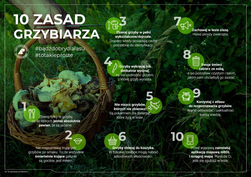 Aby zbieranie było bezpieczne dla Ciebie i przyjazne dla przyrody, pamiętaj o kilku zasadach: