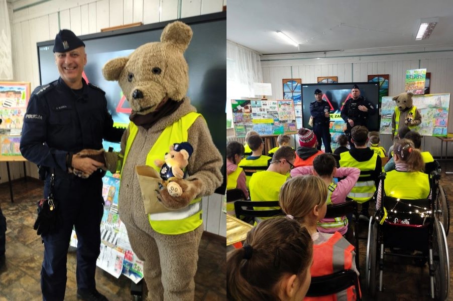 04 listopada 2025 r. odbyło się w naszej szkole spotkanie prewencyjne z przedstawicielami Komendy Powiatowej Policji w Sulęcinie nt. „Bezpieczeństwa w ruchu drogowym” i akcji pt. „Odblaskowa szkoła”. Podczas spotkania zaprezentowano prace plastyczne wykonane przez uczniów z klas I–VIII SP i SP ZET o tematyce bezpieczeństwa na drodze. Uczestnicy dodali, że nasza placówka cyklicznie realizuje program pt. „Bezpieczna szkoła”, który ma na celu podnoszenie świadomości związanej z bezpieczeństwem oraz kształtowanie właściwych postaw naszych podopiecznych. Zaproszeni goście przekazali nam cenne wskazówki dotyczące konieczności noszenia odblasków oraz obdarowali dzieci pięknymi breloczkami. Tuż po spotkaniu nasza szkoła rozbłysła w świetle reflektorów!!! Uczniowie spotkali się na pokazie „Mody Odblaskowej”. Przy pięknie przygotowanej muzyce o tematyce bezpieczeństwa i odblasków, na czerwonym dywanie prezentowali się uczniowie wraz z Panią Dyrektor Danutą Werner. Dziękuję wszystkim za przygotowanie pięknych dekoracji, strojów i elementów odblaskowych. Pamiętajmy, że odblask to tarcza o wielkiej mocy!!!