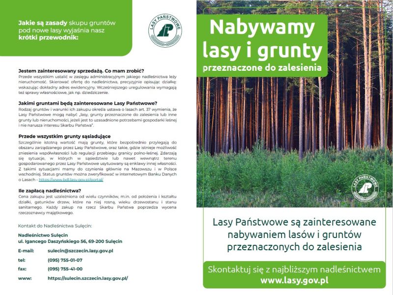 Nabywamy lasy i grunty przeznaczone do zalesienia.