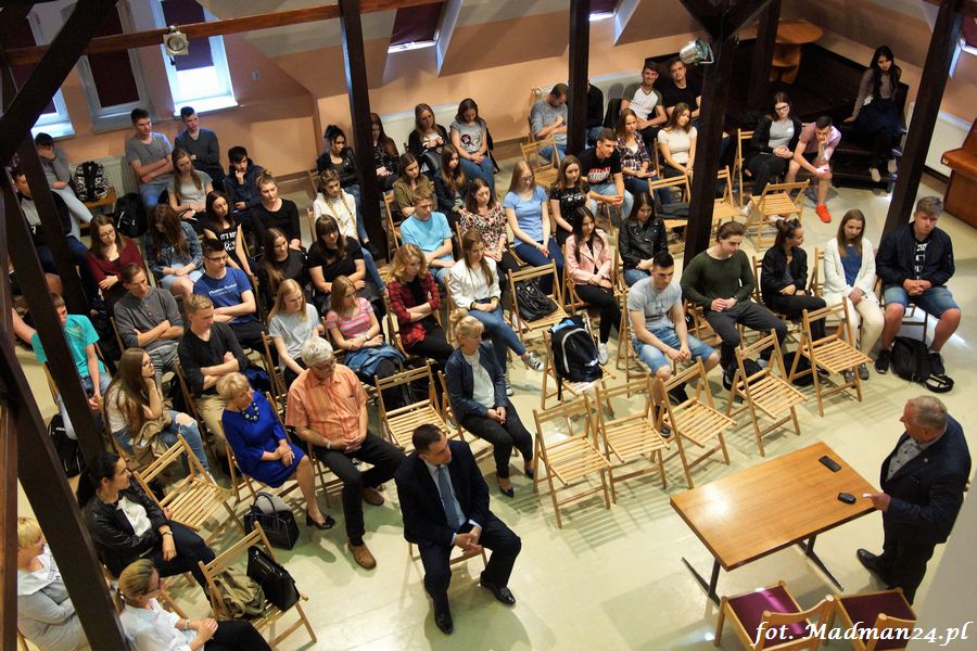 Spotkanie odbyło się w licealnej auli. Władysław Komarnicki odpowiadał na liczne pytania. Wiele z nich dotyczyło jego drogi do sukcesu. Było więc trochę wspomnień z czasów, gdy zaczynał od zera. Należy pamiętać, że dzisiejszy gość to wieloletni prezes, a od 6 lat honorowy prezes Stali Gorzów. Spotkanie zapowiadane było „z biznesmenem”, ale chyba nie trzeba wyjaśniać, że dzisiejszy gość, to także senator RP. Oprócz Liceum Ogólnokształcącego gość odwiedził też inne placówki, a relacje w osobnych artykułach.