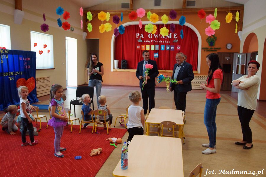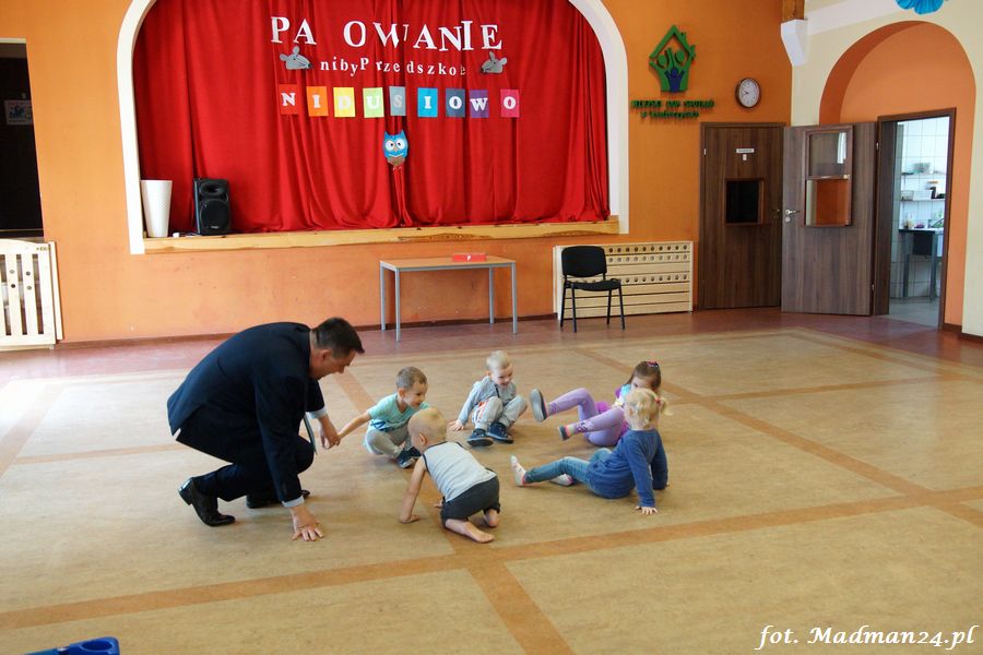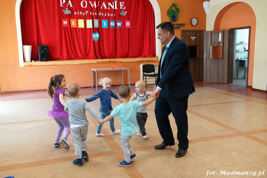 W dniu wczorajszym Nidusiowo odwiedzili niespodziewani goście: Senator RP, Honorowy Prezes Stali Gorzów Władysław Komarnicki i wicestarosta Tomasz Prozorowicz. Dzieci w przedszkolu było tym razem mniej, bo część była „na chorobowym”. Nie przeszkodziło to jednak gościom na chwilę zabawy. Władysław Komarnicki czytał też dzieciom bajki. Wizyta nie była długa, ale miejmy nadzieję, że owocna na przyszłość.