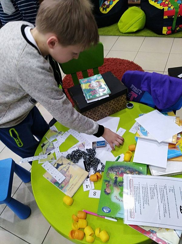 Na początku wszyscy zostali zapoznani z zasadami zabawy między innymi poznali sposoby rozwiązywania zagadek, nauczyli się otwierać zaszyfrowane kłódki. Aby odnaleźć klucz, dzieci musiały zmierzyć się wspólnie z przygotowanymi wcześniej przez nas szyframi i zagadkami – logicznymi, na spostrzegawczość, kreatywność a także wymagającymi odrobiny sprytu. Z każdym nowo odnalezionym elementem dzieci były co raz bliżej wyjścia. Każda odgadnięta zagadka, czy otwarta kłódka sprawiała im dużo radości i satysfakcji. Nasi uczestnicy, odnaleźli klucz do wyjścia i wydostali się z pomieszczenia. Przez zabawę dzieci mogły zauważyć jak ważna jest praca w grupie, a także jak można wykorzystać własną kreatywność i spostrzegawczość.