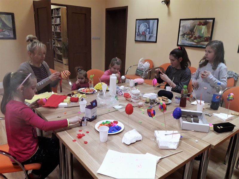 22 marca 2018r.w bibliotece w Kołczynie odbyły się zajęcia wielkanocne, na których dzieci zdobiły jajka styropianowe i wykonywały baranki, które teraz zdobią bibliotekę. Popołudnie spędzone w bibliotece upłynęło miło i radośnie wśród śmiechów i gwaru wesołych buziek dzieciaczków.