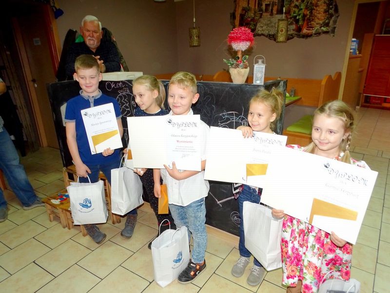 Środa 07 listopad 2018r., był wielkim dniem dla najmłodszych adeptów Szkółki Wędkarskiej „Linek Kroczek”. Wszyscy z niecierpliwością czekały na końcowe wyniki konkursu plastycznego. W Pizzerii Camaro odbyło się uroczyste uhonorowanie laureatów konkursu plastycznego.