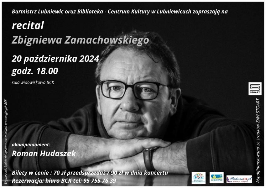 Aktualności Wkrótce..... Recital Zbigniewa Zamachowskiego Madman wrz 29, 2024 0 Recital Zbigniewa Zamachowskiego Burmistrz Lubniewic oraz Biblioteka- Centrum Kultury w Lubniewicach zapraszają na recital Zbigniewa Zamachowskiego. 20.10.2024 godz. 18:00 BCK w Lubniewicach