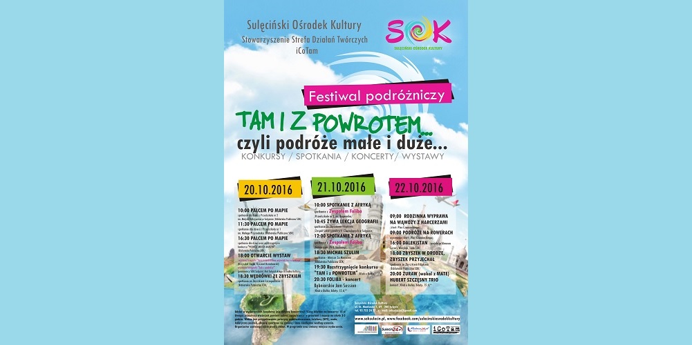 Sulęciński Ośrodek Kultury oraz Stowarzyszenie Działań Twórczych iCoTam zapraszają na pierwszy festiwal podróżniczy, organizowany na sulęcińskiej ziemi. „Tam i z…