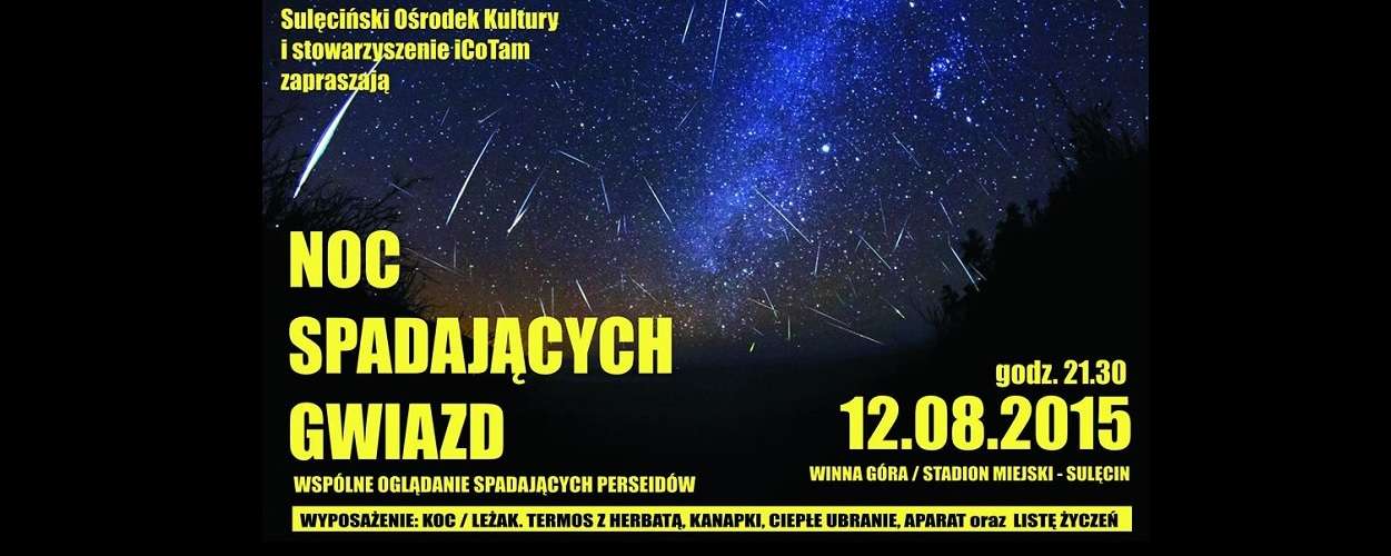 Noc spadających gwiazd Sulęciński Ośrodek Kultury oraz stowarzyszenie iCoTam zapraszają mieszkańców Sulęcina na Noc Spadających Gwiazd. 12 sierpnia na stadionie…